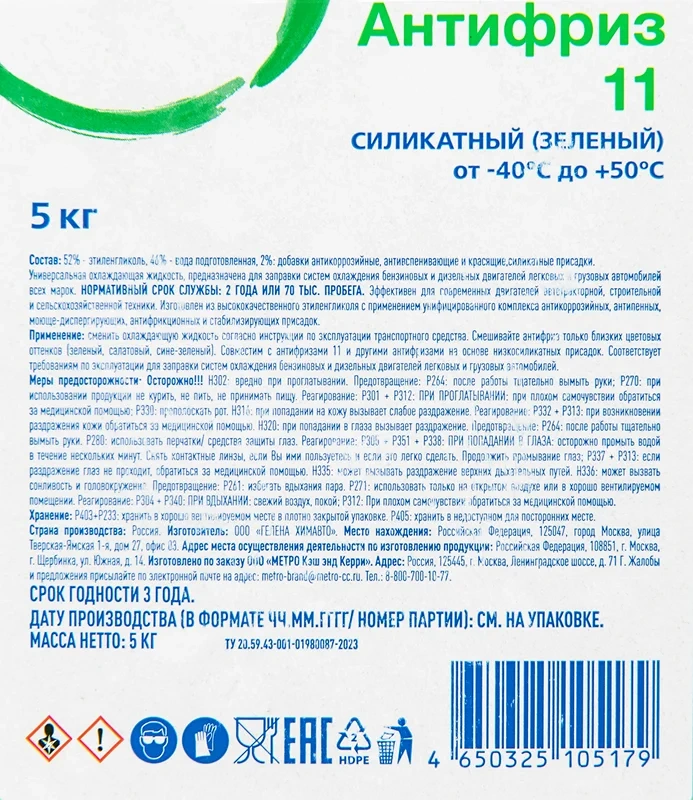Представляет собой жидкость охлаждающую низкозамерзающую на основе этиленгликоля и специально очищенной воды, не содержащую аминов, фосфатов и боратов. Разработан по гибридной технологии, содержит в себе набор силикатных присадок.