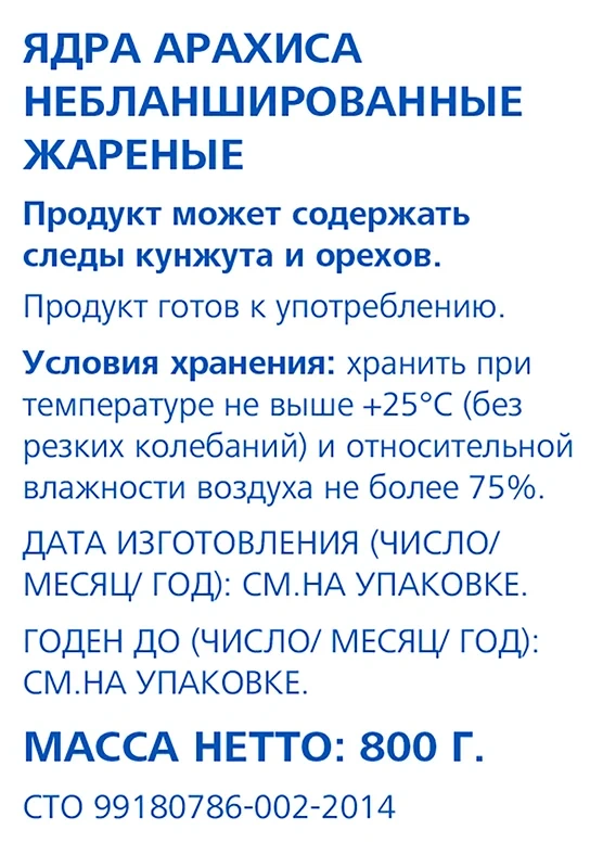 aro Арахис жареный небланшированный, 800г