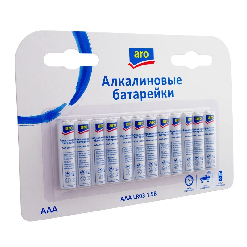 Упаковка из 12 батареек типоразмера ААА обеспечит энергией сразу несколько нужных приборов: фонарики, компьютерные мышки, настенные часы, пульты дистанционного управления, детские игрушки и многие другие портативные устройства. Алкалиновые батарейки долго держат заряд и поэтому хорошо подходят для приборов со стандартным и повышенным энергопотреблением. Это один из самых популярных в бытовых устройствах типоразмеров батареек – так называемый формат ААА. Элементы питания отличаются длительным сроком хранения: они спокойно хранятся без работы десять лет, тогда как простые солевые батарейки приходят в негодность за пару лет.