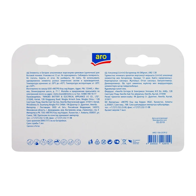 | Комплектация | батарейки lr6 аа - 12 шт. |