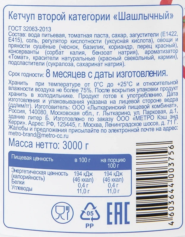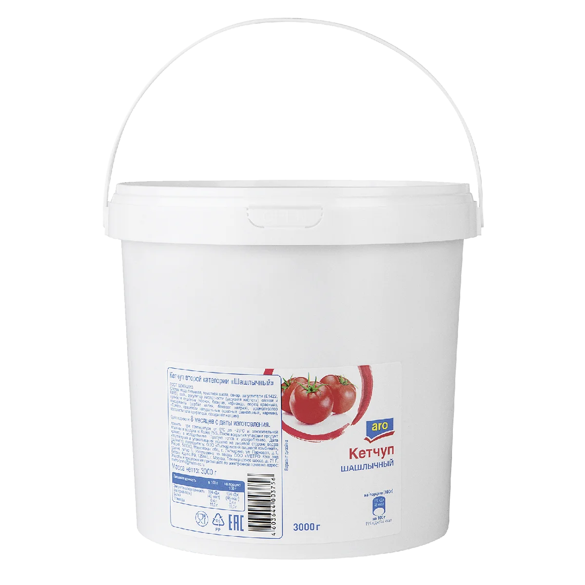 aro Кетчуп шашлычный, 3кг считается одним из самых популярных соусов-приправ к мясу. Рецепт продукта известен давно и часто становится основой других соусов. Конечный продукт изготавливается на основе густой томатной пасты с добавлением определенного количества и состава приправ, соли и пряностей. Продукт используют как для маринования, так и для подачи блюд из курицы, картошки фри, некоторых салатов, он необходим для приготовления пиццы и оптимален в качестве дополнения к традиционному шашлыку. Соус фасуется в пластиковые ведерки с плотно укупоривающейся крышкой, а объема 3 кг г хватит на долгое время.