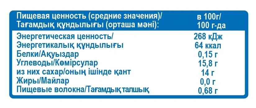| Энергетическая ценность, ккал/100 г | 58 |