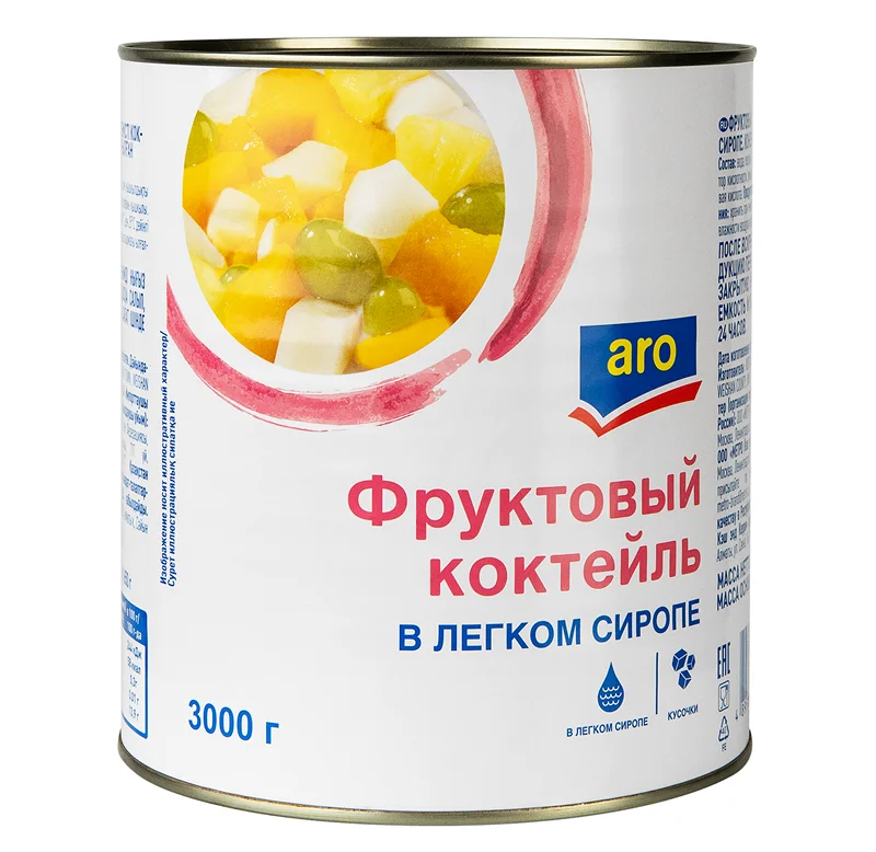 aro Коктейль фруктовый в легком сиропе, 3кг
