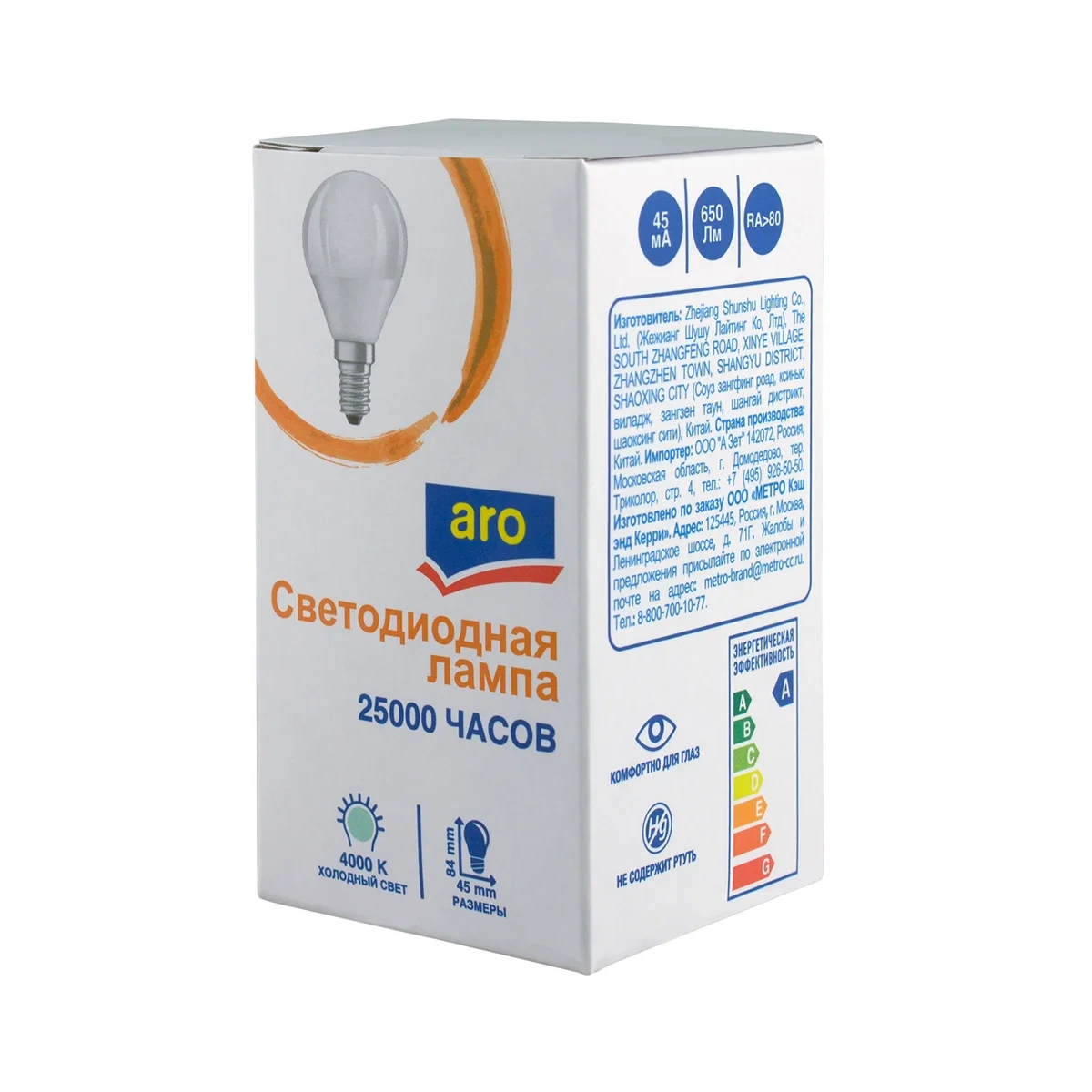 aro Лампа светодиодная E14 4000K Led 6Вт шар