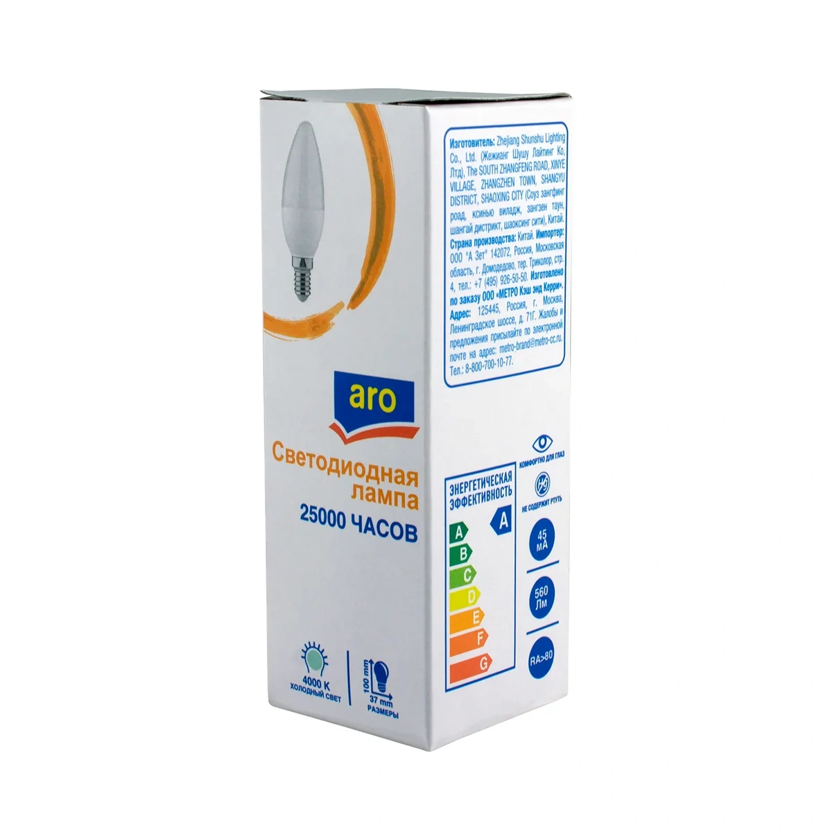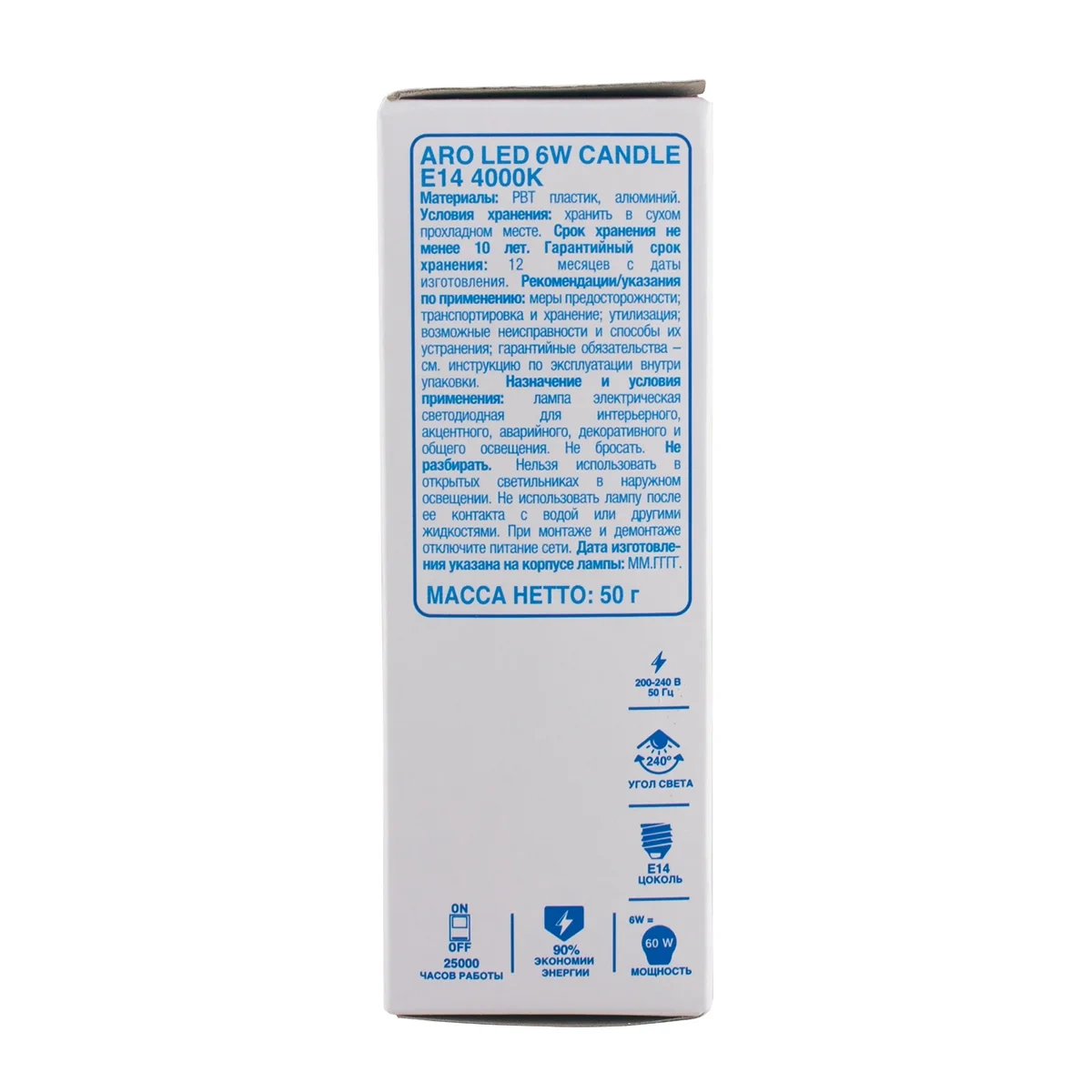 aro Лампа светодиодная E14 4000K Led 6Вт свеча
