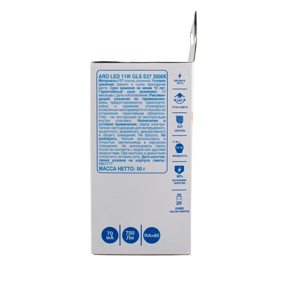 aro Лампа светодиодная E27 3000K Led 11Вт груша