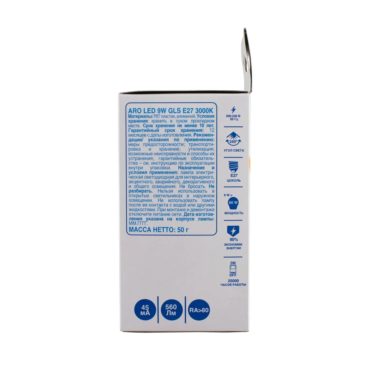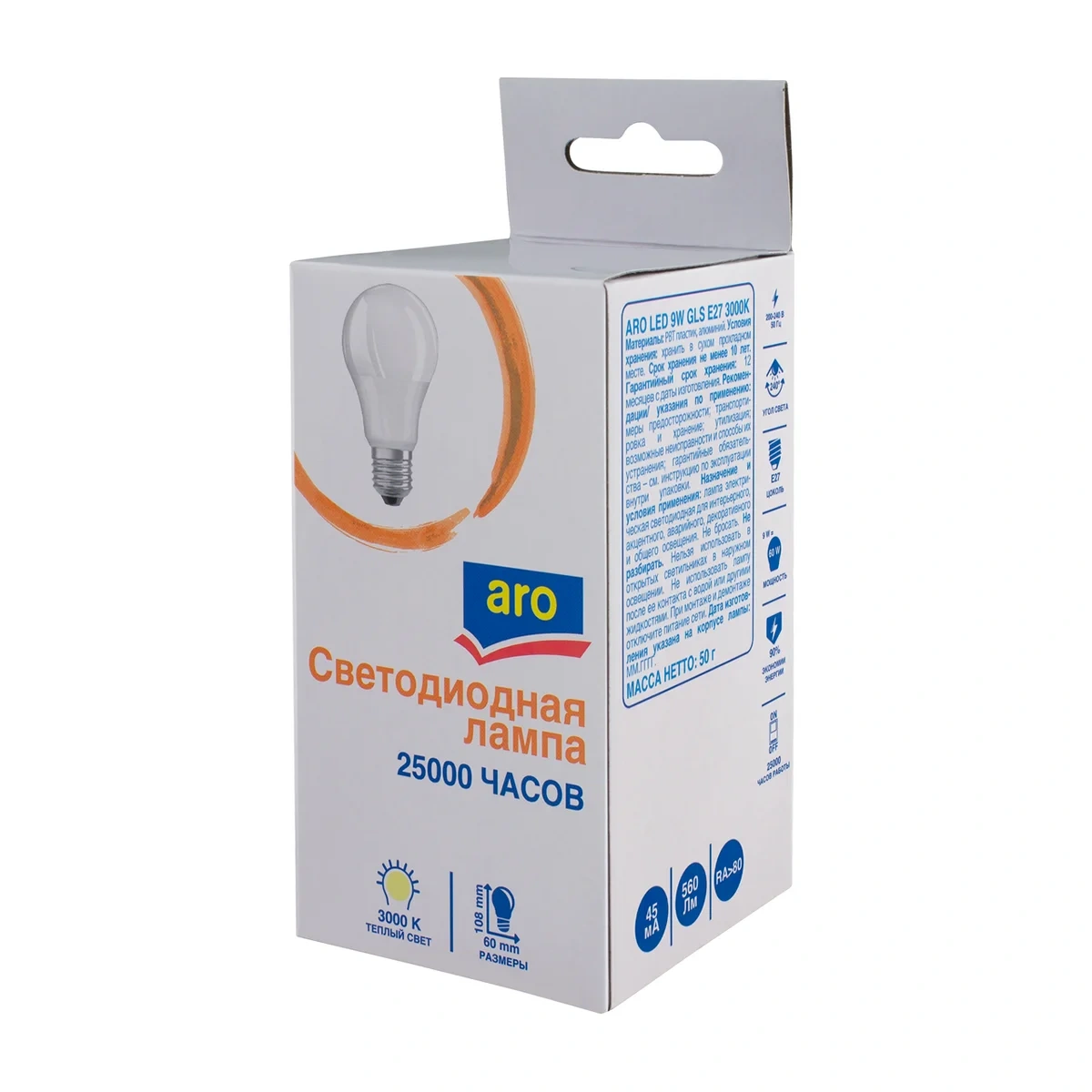 aro Лампа светодиодная E27 3000K Led 9Вт груша