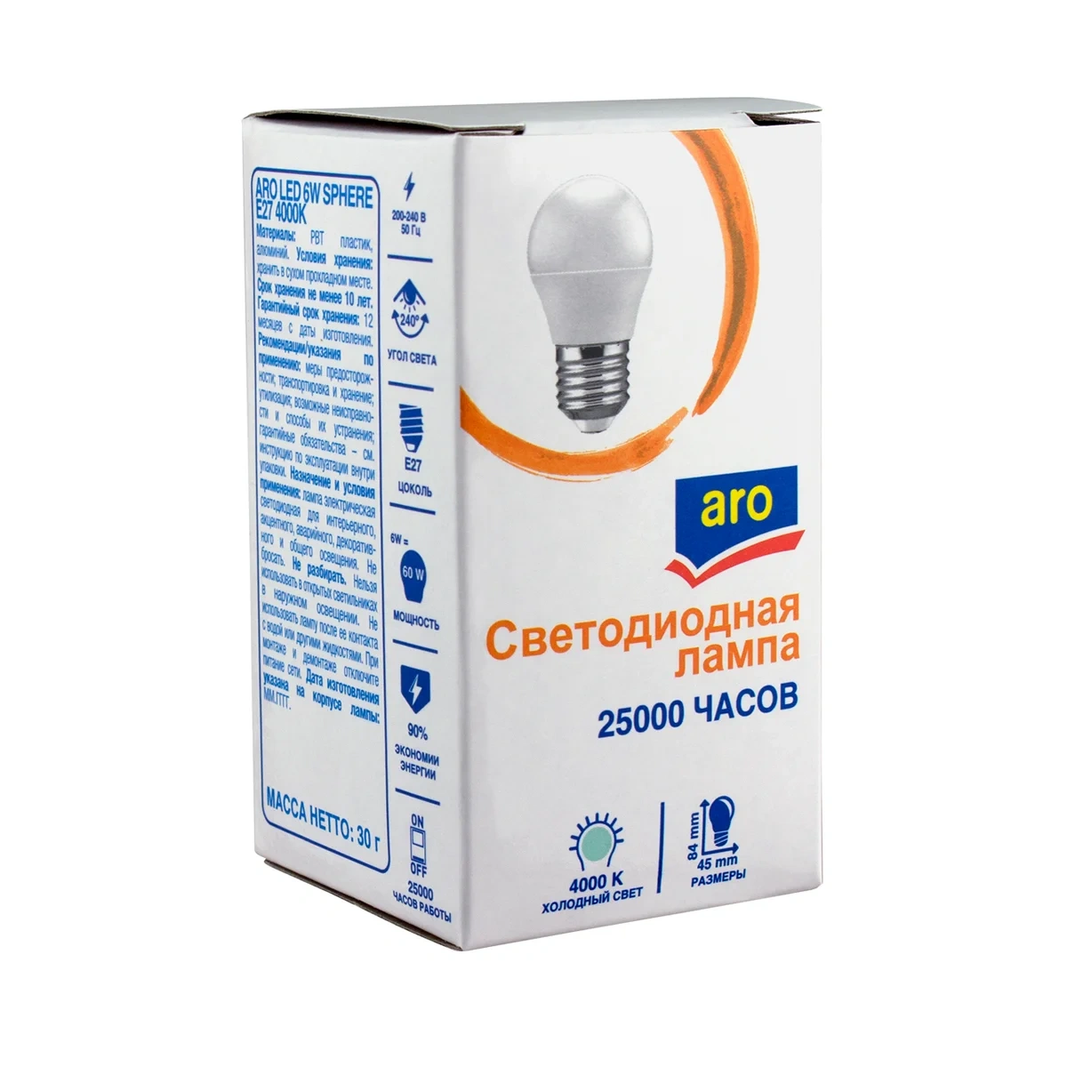 aro Лампа светодиодная E27 4000K Led 6Вт шар