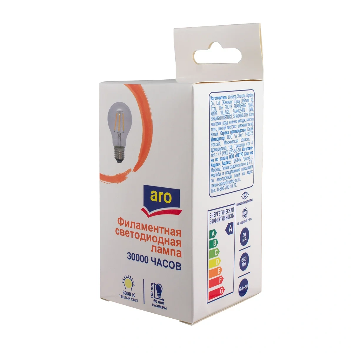 aro Лампа светодиодная филаментная E27 3000K Led 7Вт груша
