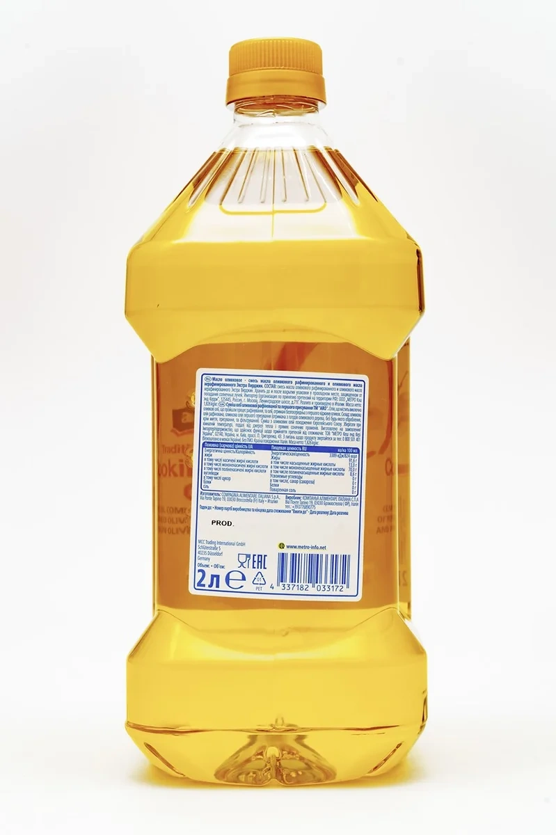 aro Масло Оливковое Pure, 2л продукт, в состав входит оливковое рафинированное и оливковое нерафинированное масло холодного отжима высшего качества. Продукт разлит в пластиковую прозрачную бутылку объемом 2 литра. Масло имеет желтоватый цвет с приятной легкой горчинкой. Оно содержит омегу 3 и 6, витамины Е, К. Продукт богат антиоксидантами, которые защищают наш организм от вредных воздействий внешней среды, уменьшают воспалительные процессы, снижают вероятность инсульта, борются с болезнями сердца, нормализуют вес, снижают сахарный диабет второго типа, предотвращают раковые заболевания, оказывают противомикробное действие. Очень полезно оливковое масло для женщин. Его можно использовать как косметическое средство вместо крема, для лица и рук, для массажа. Оливковое масло применяют в овощных салатах, на нем можно обжаривать, добавлять в пасту. В 100 граммах продукта содержится 100 граммов жира. Но в умеренном количестве оливковое масло не навредит фигуре.