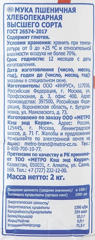 Мука Aro Высший сорт изготовлена из элитных сортов пшеницы путем тонкого помола, обладает нейтральным ароматом и вкусом. Компонент подходит для приготовления пышной сдобной выпечки, вкусных песочных кулинарных изделий, нежнейшего слоеного теста для пирожков, язычков и известного торта Наполеон, а также румяных блинчиков и оладьев, аппетитных пельменей, мант и варенников. Продукт используется для панировки котлет, рыбы, мяса, овощей при жарке, применяется для кляров в качестве загустителя крема или подливки.