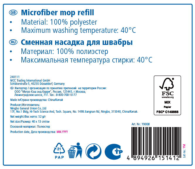 aro Насадка для швабры из микрофибры, 40 х 13см