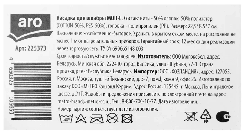 Сменная насадка для швабры МОП. Подходит для влажной уборки помещений. Идеально подходит для мытья плитки, ламината и прочих поверхностей, можно применять с хозяйственной химией.