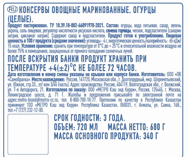 | Рекомендуемая температура хранения, C | от 0 до +25 |