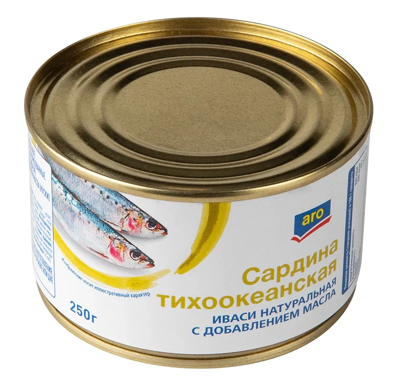 aro Сардина тихоокеанская иваси натуральная с добавлением масла, 250г