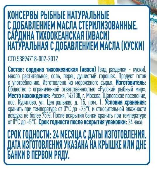 Сардина тихоокеанская иваси натуральная с добавлением масла 250г представляет собой продукт с насыщенными вкусом и ярким ароматом, который часто используется в качестве отличной закуски как для повседневного, так и для праздничного стола. Продукт отличается богатым составом. В нем содержатся Омега-3 полиненасыщенные жирные кислоты, легкоусвояемый белок (необходим для строительства клеток всего организма), а также широкий ряд витаминов и минеральных веществ. Эту рыбу употребляют как закуску. Хранить этот продукт рекомендуется в холодильной камере в течение всего срока годности. для праздничного стола. Продукт отличается богатым составом. В нем содержатся Омега-3 полиненасыщенные жирные кислоты, легкоусвояемый белок (необходим для строительства клеток всего организма), а также широкий ряд витаминов и минеральных веществ. Эту рыбу употребляют как закуску. Хранить этот продукт рекомендуется в холодильной камере в течение всего срока годности.