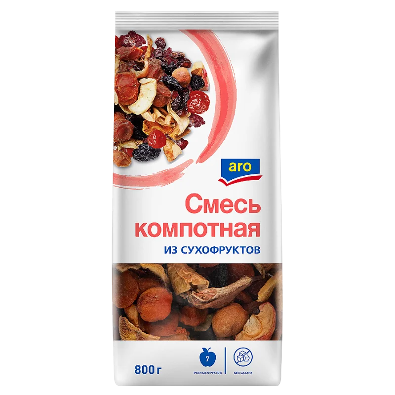 Смесь компотная aro, 800 г поможем вам приготовить ароматный напиток. В состав смеси входят исключительно натуральные ингредиенты (абрикос, яблоки, персики, вишни, груша и чернослив), поэтому компот получается не только вкусный, но и полезный. Так, курага, богатая кальцием, нормализует работу желудочно-кишечного тракта и положительно сказывается на работоспособности. А чернослив способен повысить гемоглобин и поможет очистить организм от токсинов. Напиток будет хорош даже без сахара и понравится как взрослым, так и детям. aro – современный бренд, ориентированный на сегмент эконом-класса. Продукция, выпускаемая этой торговой маркой, отличается приемлемыми ценами и доступна людям с небольшими доходами. При этом продукция aro мало чем уступает продукции знаменитых брендов.
