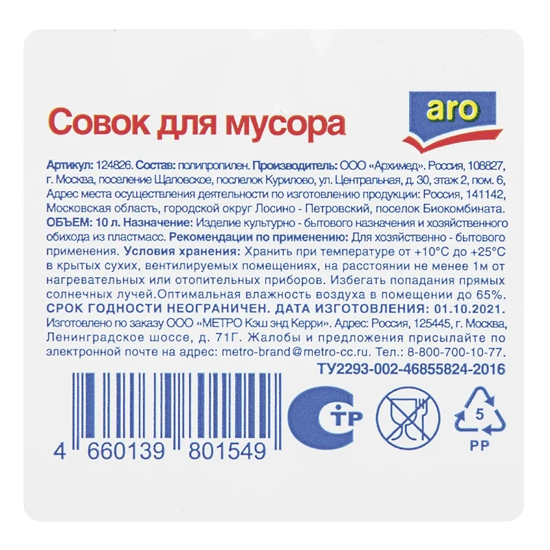 aro Совок для мусора пластиковый