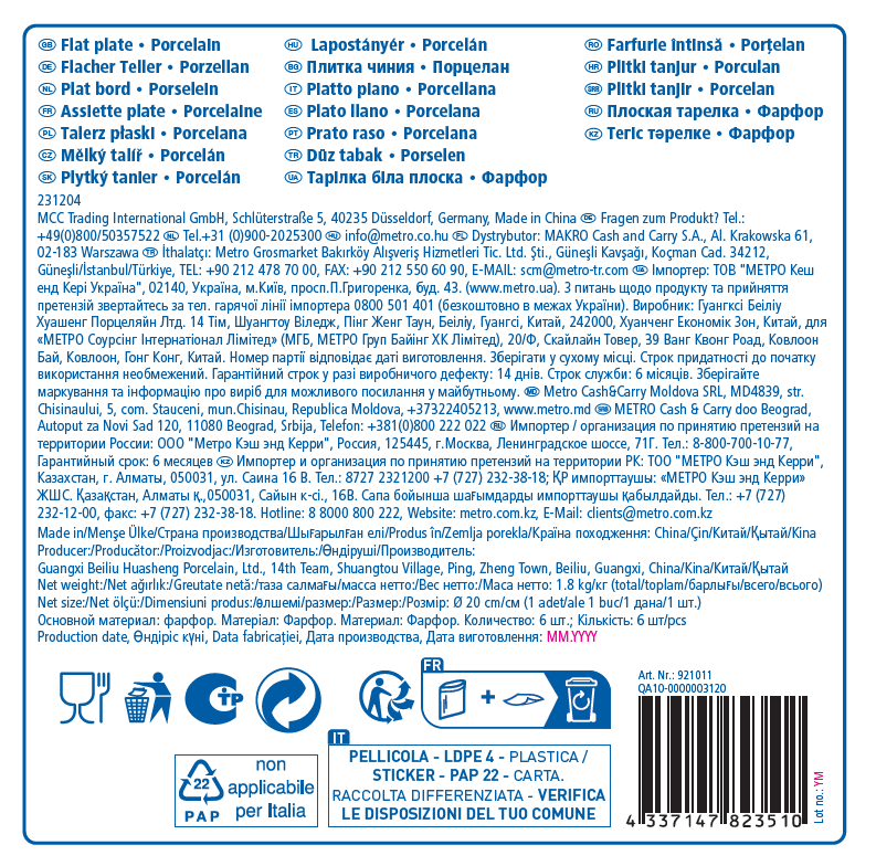 Изделие из высококачественного фарфора повышенной прочности устойчиво к образованию царапин от столовых приборов, не впитывает запахи и не окрашивается от продуктов, а также не темнеет с течением времени. Подходит для подачи десертов и закусок.