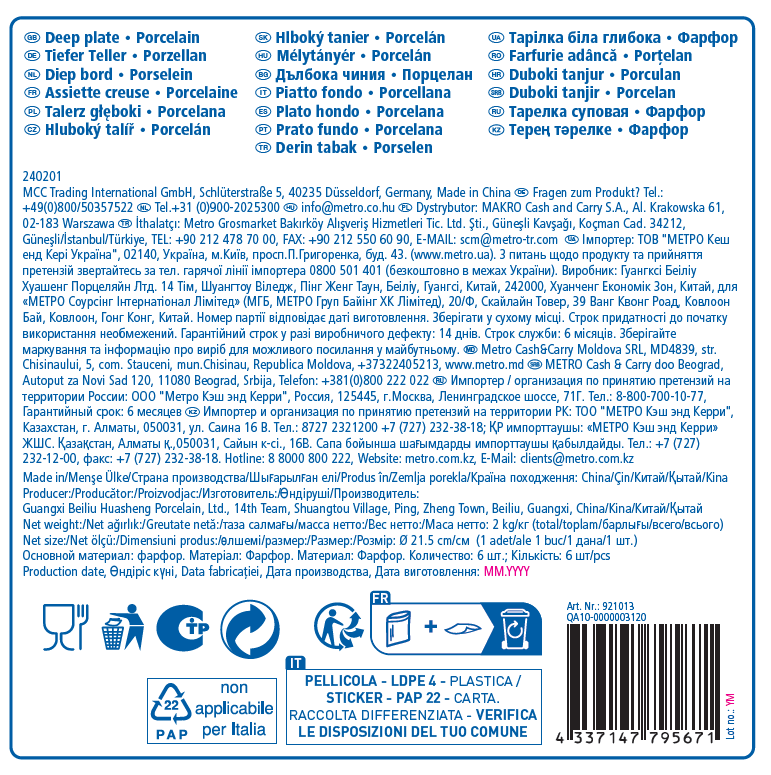 Стильный аксессуар для каждого дома. Вместительная посуда отлично подходит для подачи самых разнообразных супов и бульонов. Прекрасно подойдет для подачи первых блюд, различных каш, салатов. Можно мыть в посудомоечной машине и использовать в микроволновой печи.