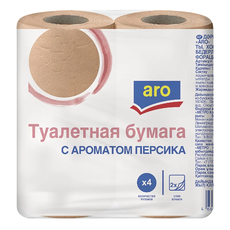 aro Туалетная бумага Персик 2-слойная, 4 рулона