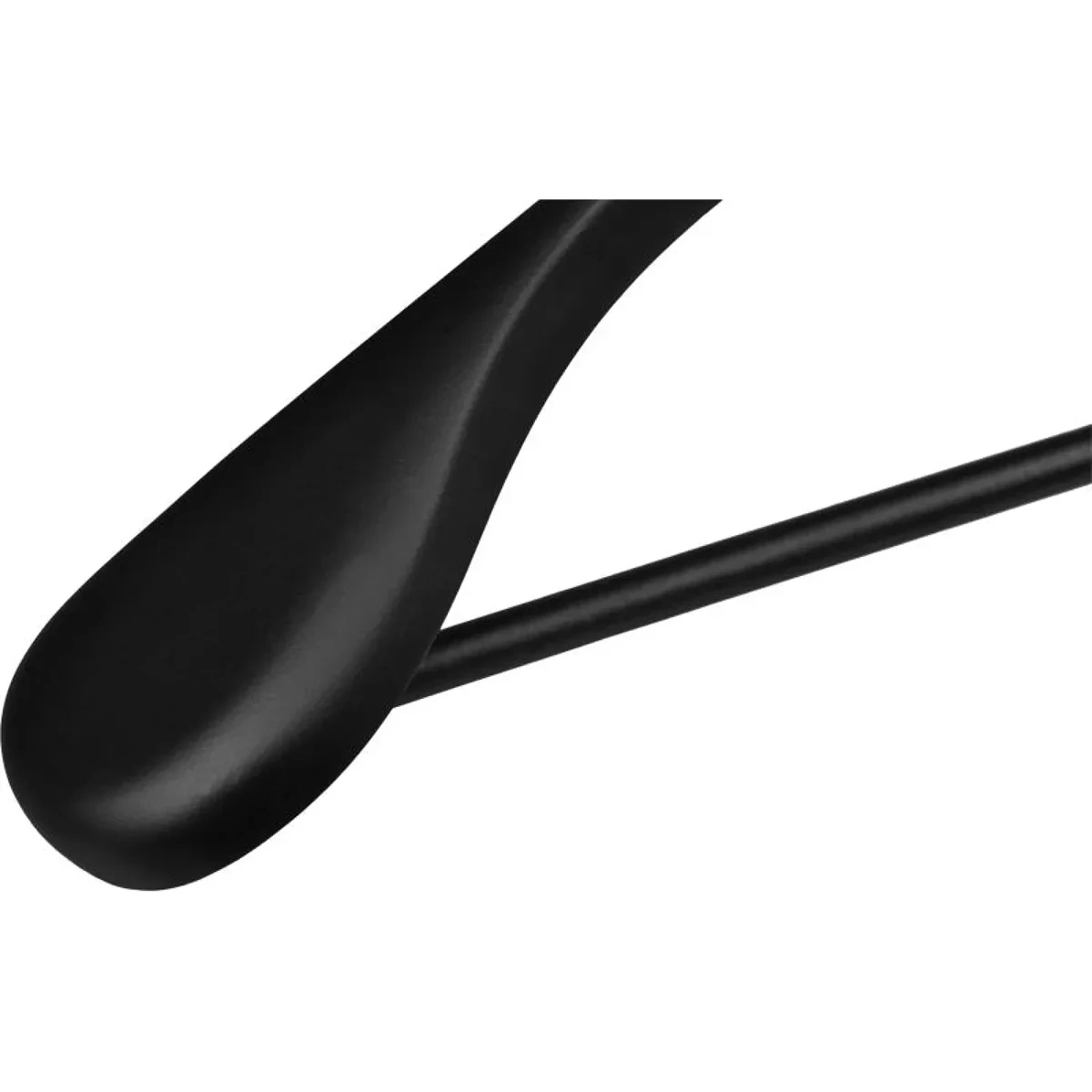 Анатомическая вешалка-плечики размера 48-50 классического черного цвета с перекладиной для брюк, юбок. Имеет антискользящее резиновое покрытие на всю площадь вешалки. Изготовлена из натуральной древесины (шима суперба). Металлический крючок вращается.