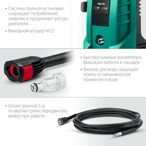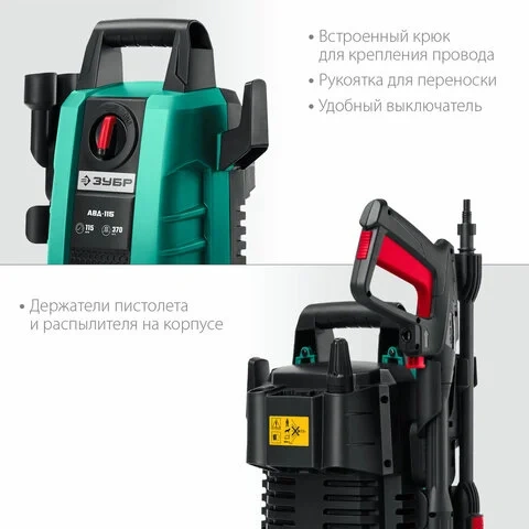 Минимойка ЗУБР АВД-115, мощность 1,5 кВт, давление 115 бар, шланг 5 м