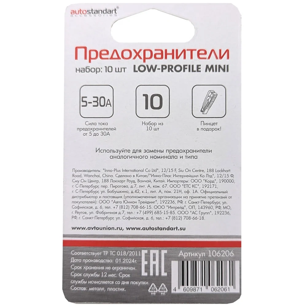 Предохранители Autostandart Low-Profile Mini, 10шт