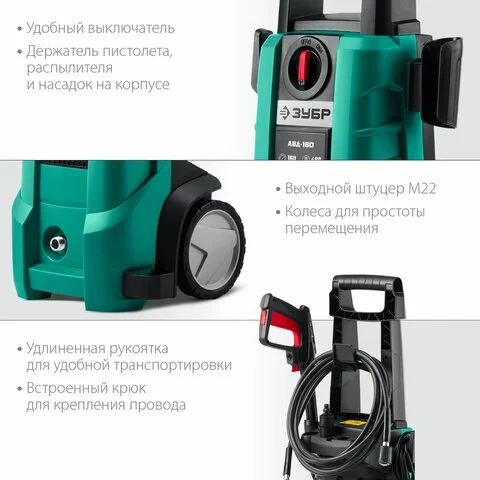 Минимойка ЗУБР АВД-160, мощность 2,1 кВт, давление 160 бар, шланг 5 м