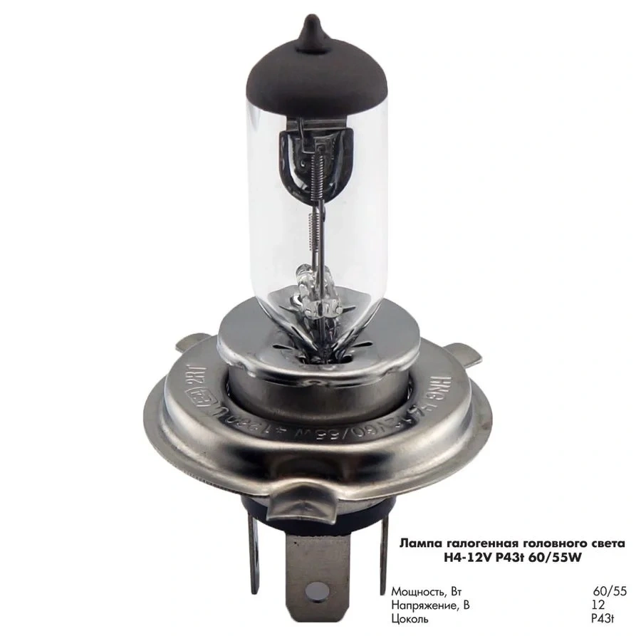 Потребляемая мощность 60/55Вт. Напряжение 12В. Тип цоколя P43t. Европейские сертификаты качества. Излучают световой поток максимально приближенным к дневному свету, благодаря этому, глаза водителя меньше устают. Ресурс работы не менее 500 часов.