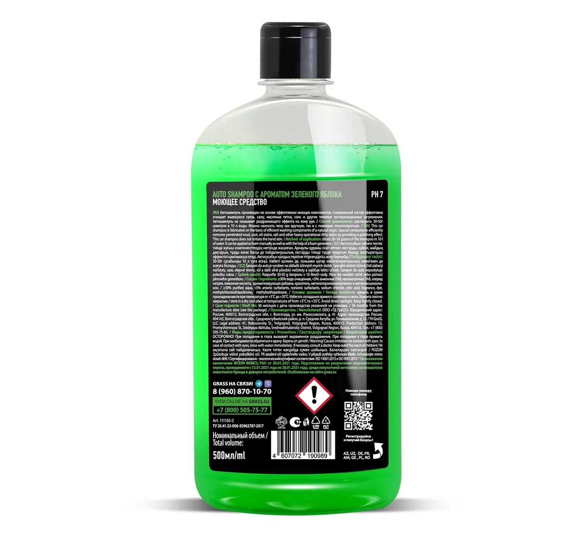 Автошампунь Grass Auto Shampoo с ароматом яблока, 500мл