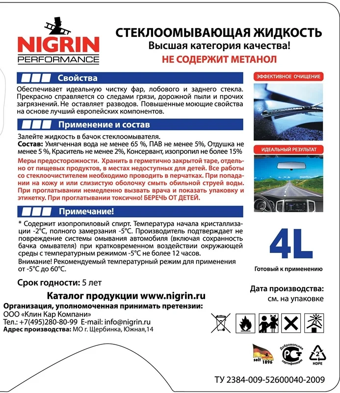 Стеклоочиститель автомобильный Nigrin до -30°, 4л