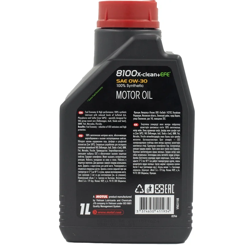 Масло моторное Motul 8100 X-Clean+ EFE 0W30, 1л