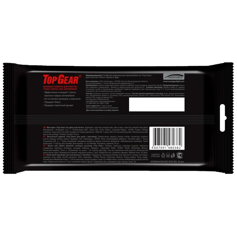 Салфетки влажные для автомобиля Top Gear для стекол, 30шт/уп