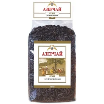 Чай листовой черный Азерчай Букет в пакете 400 г. Чай «Азерчай» черный сорт «Букет», выращенный на солнечных горных угодьях на юге Азербайджана и собранный по особым правилам крупнолистовой чай в отличие от ломаного чая, имеет яркий тонизирующий эффект.