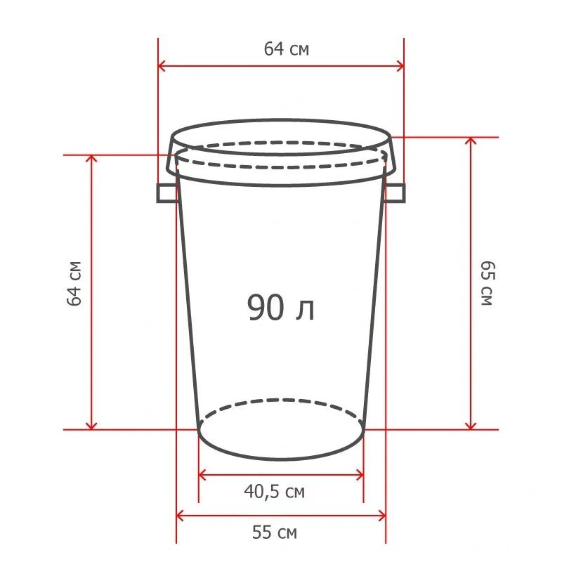 90-а литровый пластиковый контейнер (бак для мусора) с яркой крышкой. Крышка крепится к баку на специальных петлях-защелках, что позволяет ей перекидываться и держаться на петлях. Есть удобные ручки для переноски. Бак вместителен, прочен, устойчив к ударам, легко очищается, не сохраняет нежелательных запахов. Изделие можно использовать для хранения воды, мусора, компоста, в качестве ёмкости для сыпучих строительных материалов. Внутри бака имеется мерная шкала.