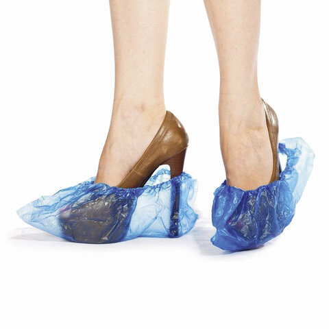 Бахилы 100 штук (50 пар) в упаковке, ЭКОНОМ, размер 39х13 см, 17 мкм, 2 г, ПНД, ЛЮБАША