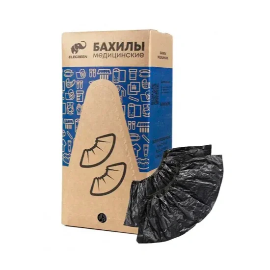 Бахилы Elegreen Strong 10гр, черные, с 2й резинкой, в евроблоках, 300 пар в упаковке