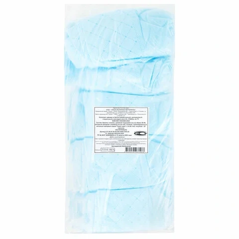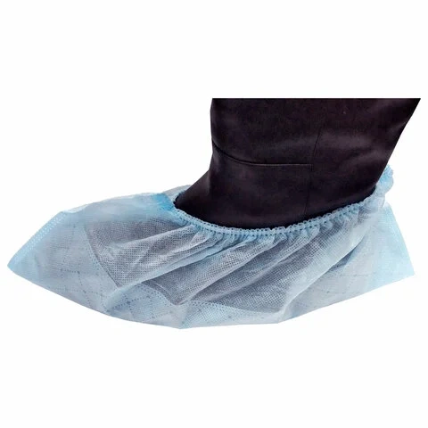 Бахилы из спанбонда низкие с двойной подошвой КОМПЛЕКТ 50 штук (25 пар), 65 г/м2, ГЕКСА, голубые