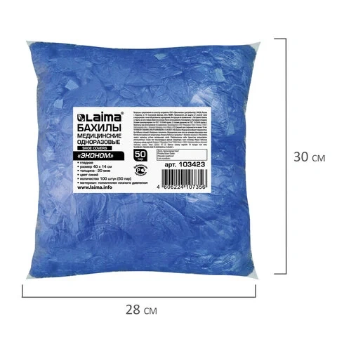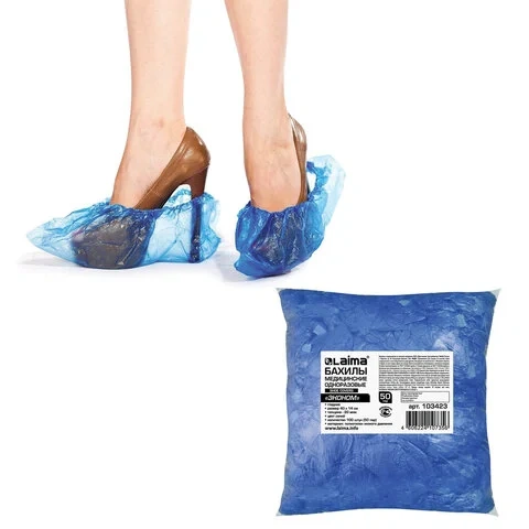 Бахилы Laima Эконом 10 мкм, голубые, 50 пар в упаковке