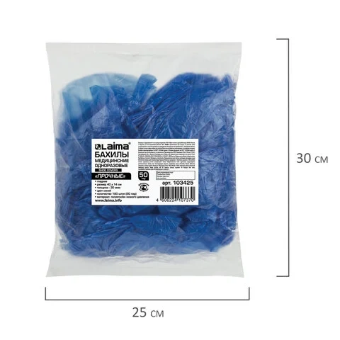 Бахилы Laima Прочные 15мкм, голубой, 50 пар