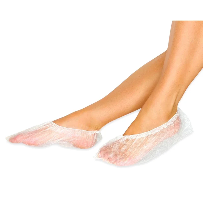 Носки изготавливаются из спанбонда с показателями плотности 15 г/кв.м. Фиксацию носков на ноге обеспечивает прочная резинка. Она защищает от попадания влаги внутрь, надежно держит и не дает соскользнуть бахиле с ноги. Изделия производятся в универсальном размере (фактически можно использовать вплоть до 46). Бахилы расположены не в индивидуальной упаковке, а в групповой (россыпью).