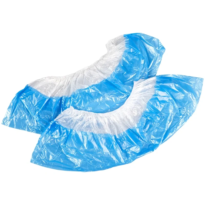 Бахилы Officeclean ПНД 80мкм, 7г, бело-голубые, двойные, 50 пар в упаковке