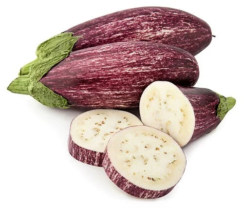 Баклажаны отличаются не только характерным фиолетовым цветом, но и особенностями структуры, которые выражаются в более тонкой кожице и нежной мякоти. Готовый овощ приобретает приятный, немного сладковатый вкус. Эти полосатые бело-фиолетовые баклажаны очень красиво смотрятся на тарелке и не горчат, что делает их универсальным продуктом для различных блюд.