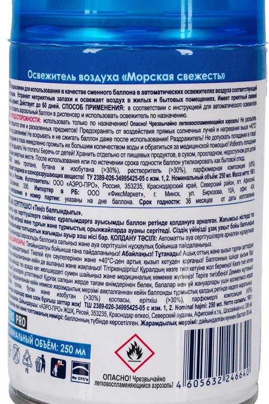 Огнеопасно! Баллон под давлением. Не устанавливать вблизи источников тепла, огня или искр, электрического оборудования и под прямыми солнечными лучами - в любых местах, где работающая система может нагреваться свыше 50°С. Не распылять вблизи открытого огня и раскаленных предметов. Не курить! Не разбирать, не сжигать и не прокалывать баллон даже после использования. В случае попадания на кожу - смыть теплой водой, при появлении раздражения или проглатывании - обратиться к врачу. При попадании в глаза - осторожно промыть большим количеством воды, при наличии линз - удалить их и продолжить промывание. Использовать баллон только по прямому назначению.