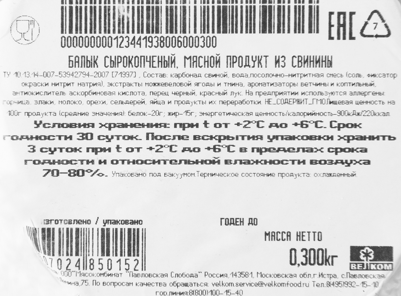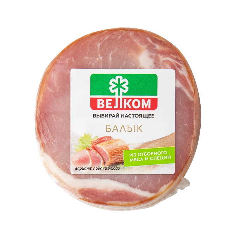 Изготавливается из цельной мышцы и коптится на натуральных опилках. Он отличается аппетитным срезом, насыщенным вкусом и ароматом, который подчеркивают идеально подобранные специи. Балык не только доставляет удовольствие своими дегустационными качествами, но и приносит пользу организму: быстро утоляет голод, восстанавливает силы, укрепляет мышечную ткань, повышает иммунитет. Это изысканный мясной деликатес, приготовленный из цельного куска свиного карбонада с добавлением ароматных специй: можжевеловых ягод, перца и тмина. Для его производства использовалось охлажденное мясо и натуральное копчение.
