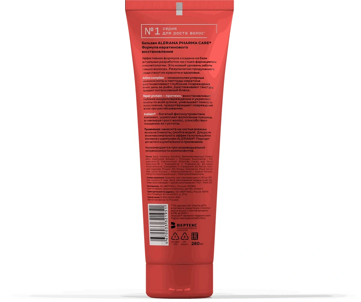Бальзам Alerana Pharma Care формула кератинового восстановления, 260мл