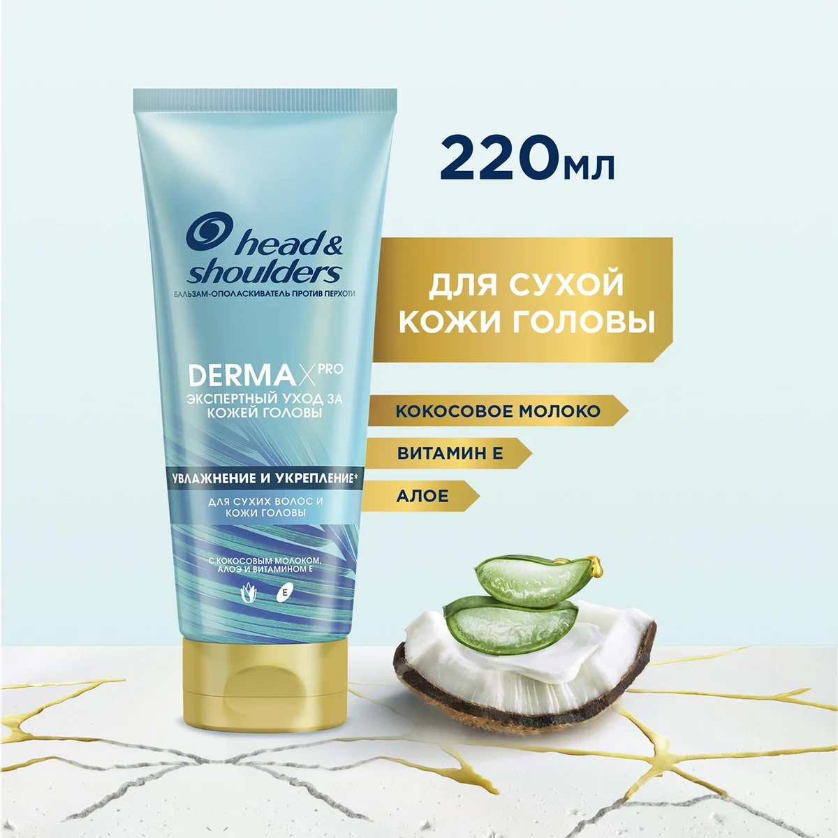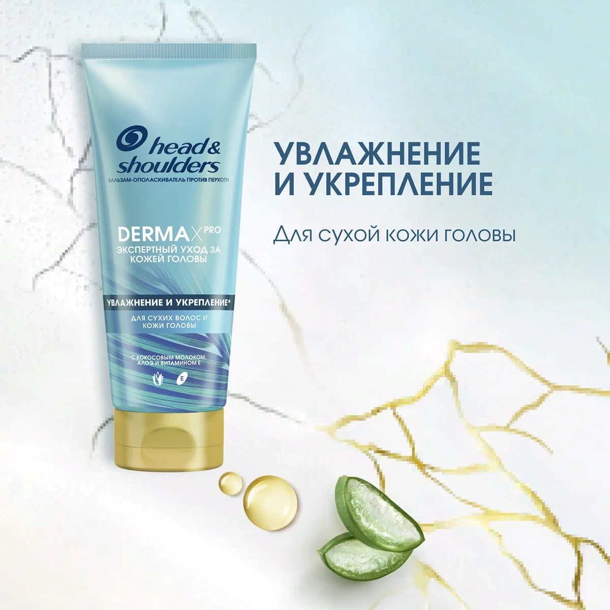 Революция в уходе за кожей головы! Экспертный трехступенчатый уход для питания сухой кожи головы и волос от Head & Shoulders (Хед энд Шолдерс) – коллекция Derma X Pro (ДермаИкс Про). Использование бальзама-ополаскивателя Derma X Pro от Head&Shoulders усиливает защиту от сухости и перхоти. Шампунь и бальзам-ополаскиватель воздействуют в синергии для максимального питания и восстановления кожи головы и волос. Формула бальзама содержит ухаживающие и увлажняющие ингредиенты для ухода за кожей головы и волосами: кокосовое молоко, алоэ и витамин Е. Благодаря входящему в состав клинически проверенному активному компоненту пироктон оламину бальзам-ополаскиватель эффективно борется с перхотью*. Результат? Увлажненная кожа головы и здоровые волосы без перхоти* по всей длине. Для достижения максимального эффекта увлажнения волос и кожи головы используйте совместно с шампунем (шаг 1) и эликсиром (шаг 3) из коллекции Derma X Pro. *Видимая перхоть при регулярном применении.