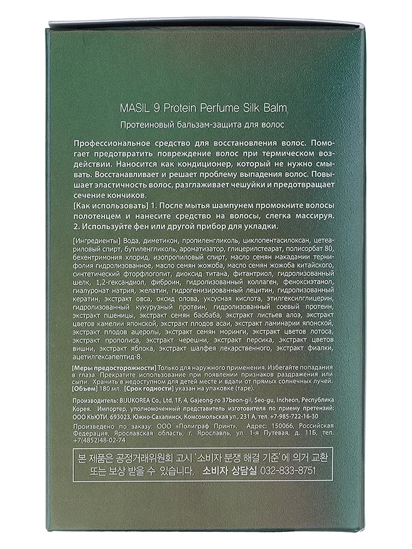 Белковый бальзам 9 Protein Perfume Silk Balm имеет сладкий свежий цветочный аромат, помогает предотвратить тепловое повреждение. Этот бальзам можно наносить как кондиционер, который не нужно смывать. Предотвращает тепловое повреждение от горячих средств, для укладки волос. Восстанавливает и решает проблему выпадения волос. Улучшает и укрепляет эластичность волос. Способ применения: нанесите достаточное количество на чистые влажные или сухие волосы перед сушкой/укладкой волос.