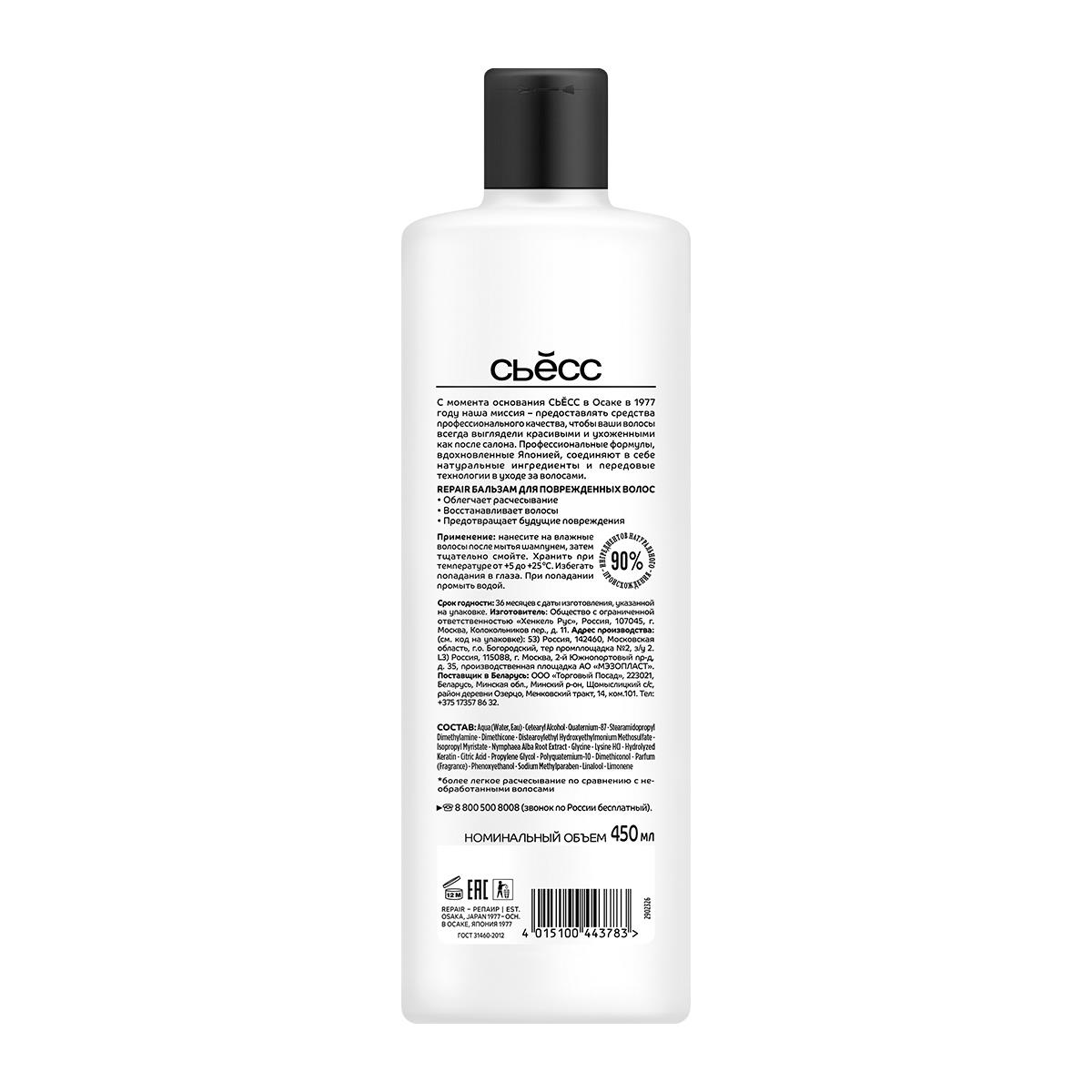 Бальзам для волос Сьёсс Repair для сухих, поврежденных волос, легкое расчесывание и восстановление в